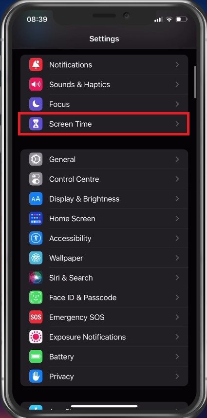 افتح إعدادات آيفون الخاص بك. هنا، حددوقت الشاشة.