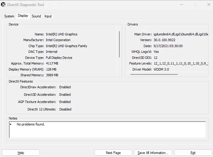 يرتبط خطأ dxgmms2.sys مباشرة بـ DirectX في Windows، حيث أن اسم الملف هو اختصار لـ DirectX Graphics MMS. لتشخيص المشكلة، استخدم أداة تشخيص DirectX المضمنة في نظام التشغيل Windows باتباع الخطوات التالية.