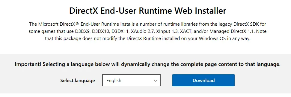 4. إذا كانت هناك أخطاء مذكورة، فيجب عليك تنزيل DirectX End-User Runtime Web Installer من ملفالموقع الرسمي لشركة مايكروسوفت.