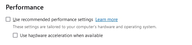 الخطوة 5: قم بإلغاء تحديد المربع الموجود قبلاستخدم إعدادات الأداء الموصى بهاخيار.