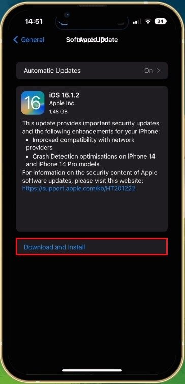 عند الانتهاء من ذلك، عد إلى إعدادات النظام الرئيسية، ثم قم بالتمرير لأسفل، ثم انقر فوقعام. اضغط علىتحديث البرنامجوقم بتنزيل أحدث إصدار من iOS قبل إعادة تشغيل جهازك. لن يؤدي هذا إلى إصلاح مشكلات البرامج المحتملة فحسب، بل سيؤدي أيضًا إلى إعادة تشغيل جميع العمليات على جهازك، مما قد يساعد في إصلاح خطأ iTunes Store.