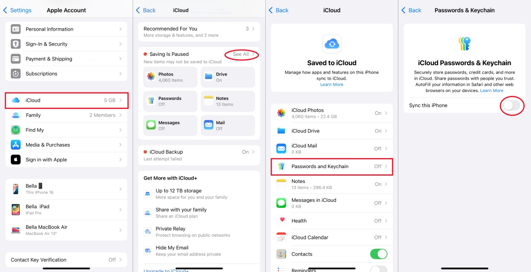 تساعد iCloud Keychain في إدارة كلمات المرور والمعلومات الحساسة الأخرى. ولكن إذا كانت هناك مشكلة في Keychain، فقد يؤدي ذلك إلى منع تحديث إعدادات Apple ID.