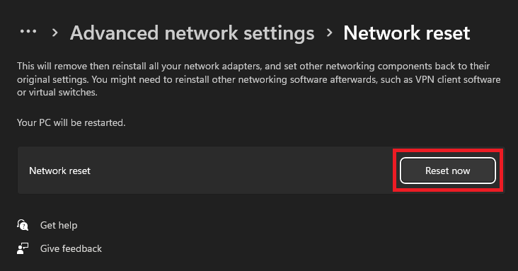 الخطوة 2:في النافذة الجديدة، انقر فوق "إعادة الضبط الآن" لبدء إعادة ضبط إعدادات الشبكة.