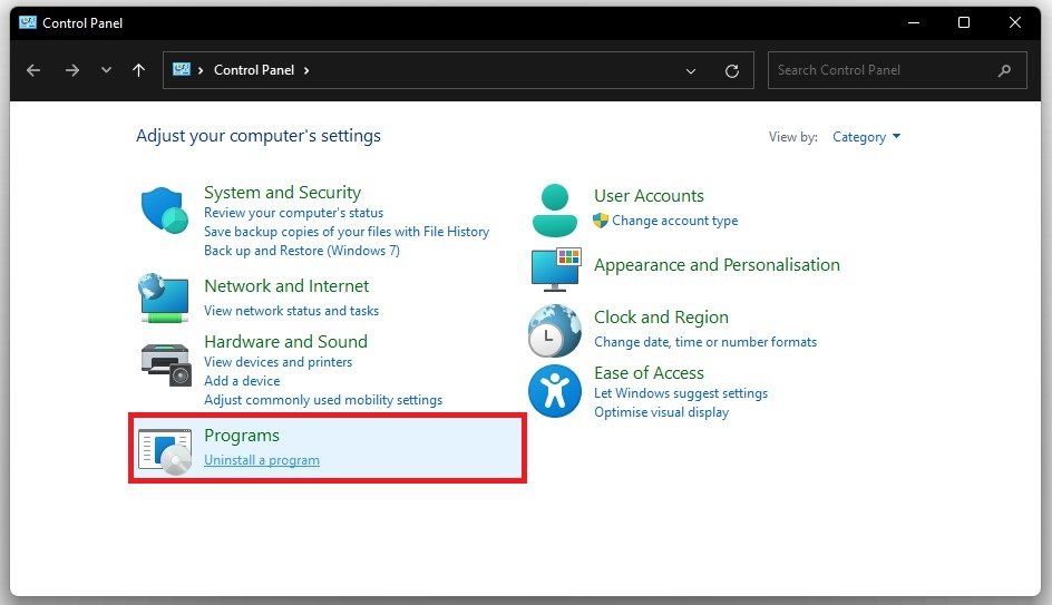 لإزالة تطبيق مكافحة الفيروسات، ابحث عنلوحة التحكملفتحه.عرض حسب: الفئة، وتحتالبرامج، يختارإلغاء تثبيت برنامج.