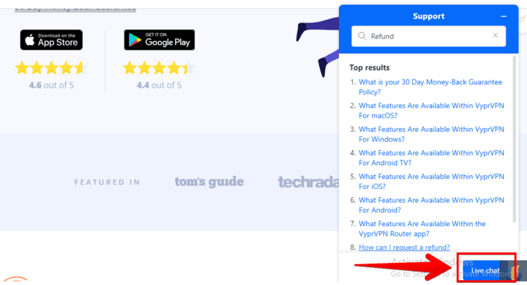 فيما يلي خطوات الحصول على عرض استرداد الأموال من VyprVPN: