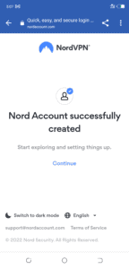 - ستؤكد الشاشة الجديدة أنك قمت بإنشاء حساب Nord بنجاح. مقبض "يكمل.”