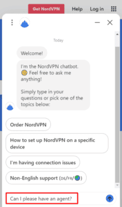 يمكنك أيضًا طلب استرداد الأموال عن طريق الاتصال بدعم NordVPN عبر البريد الإلكتروني ([البريد الإلكتروني محمي]) - ولكن دعم الدردشة أسرع!