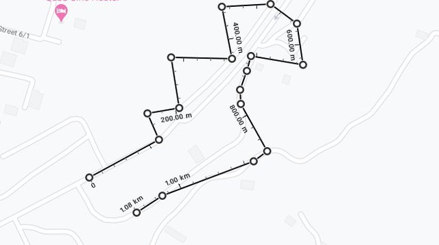 تعمل أداة القياس بنفس الطريقة الموجودة في خرائط Google. فقط انقر بزر الماوس الأيسر لإسقاط نقطة وانقر مرة أخرى لإسقاط نقطة ثانية، وسيتم حساب المسافة بين نقطتين أدناه. يمكنك أيضًا إضافة نقاط متعددة لإنشاء مسار.