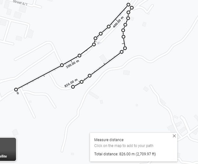 بعد ذلك، انقر بزر الماوس الأيسر في أي مكان لإسقاط النقطة التالية. ستقوم خرائط جوجل برسم خط بين النقطتين وإظهار الفرق الإجمالي بالأمتار والأقدام أو الكيلومترات والأميال في الأسفل.