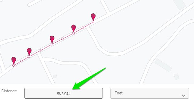 يمكنك الاستمرار في إضافة النقاط بقدر ما تريد وسيتم حساب المسافة في الجانب الأيسر السفلي من الشاشة. تعتمد وحدة القياس على تفضيلات وحدة القياس الحالية في إعدادات خرائط Google.