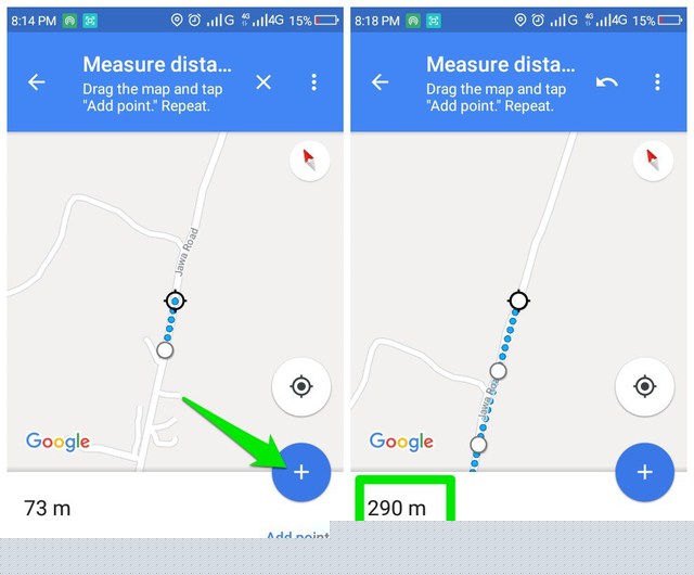 يختلف قياس المسافة على تطبيق Google Maps Android أو iOS قليلاً لأنه يستخدم طريقة السحب بدلاً من مجرد إضافة نقطتين. ومع ذلك، أود أن أقول أنه أسهل بكثير في الاستخدام وأكثر دقة أيضًا. إليك كيفية استخدامه: