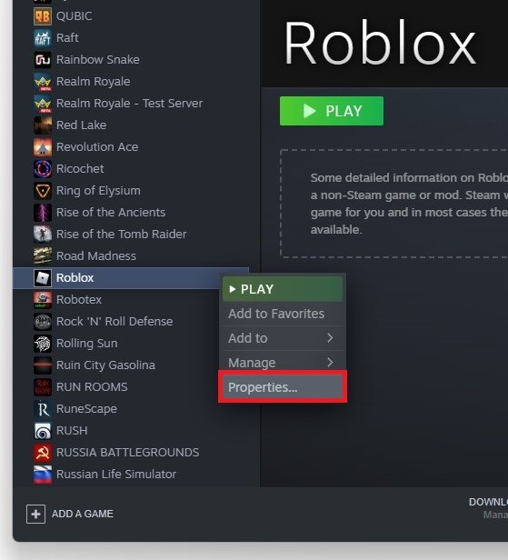 انقر فوقإضافة البرامج المحددةوسيتم بعد ذلك إضافة مشغل Roblox إلى جهاز Steam الخاص بيمكتبة.