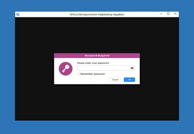 - وأخيرًا، يمكنك إدخال كلمة المرور التي ستراها على واجهة جهاز الكمبيوتر الآخر والضغط على "موافق" للوصول بنجاح عن بعد إلى جهاز الكمبيوتر الآخر.