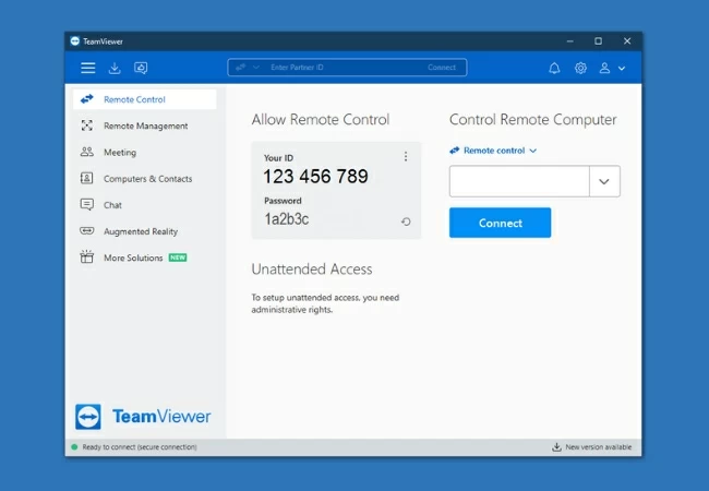 برنامج TeamViewerهي أداة متعددة الاستخدامات تعمل على سد الفجوة بينك وبين جهاز كمبيوتر بعيد، مما يجعلك تشعر وكأنك تجلس أمامه مباشرةً، بغض النظر عن مكان وجودك في العالم. تعتبر هذه الميزة القوية مثالية لأي شخص يحتاج إلى الوصول إلى جهاز الكمبيوتر الخاص به في المنزل أو العمل أثناء التنقل. باستخدام برنامج TeamViewer، يمكنك بسهولة عرض الملفات وإدارتها وتشغيل البرامج وتنفيذ المهام على الكمبيوتر البعيد كما لو كنت موجودًا هناك فعليًا. ما عليك سوى تثبيت تطبيق TeamViewer على كلا الجهازين – الجهاز الذي تريد التحكم فيه والذي تتحكم منه. يؤدي هذا إلى إنشاء اتصال آمن وخاص بين الجهازين. ما يميز برنامج TeamViewer حقًا هو تصميمه البديهي، مما يجعله في متناول الجميع، بغض النظر عن مستوى المهارات الفنية.