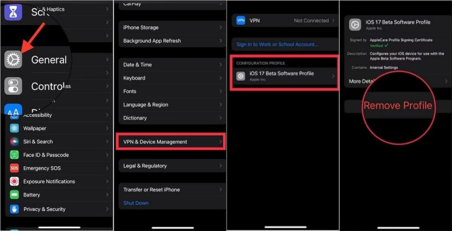 A2:لإزالة iOS Public Beta، يمكنك القيام بذلك مباشرة في تطبيق الإعدادات باتباع الخطوات التفصيلية الموضحة في الجزء 2. أو يمكنك الانتقال إلى الجزء 3 أو الجزء 4.