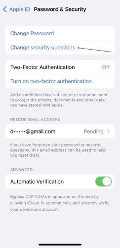 الخيار 1. إعادة تعيين أسئلة أمان معرف Apple في الإعدادات