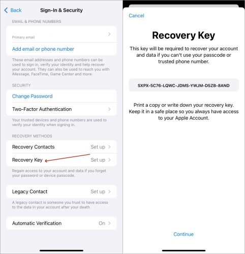 الطريقة الثانية. فتح معرف Apple من خلال مفتاح الاسترداد