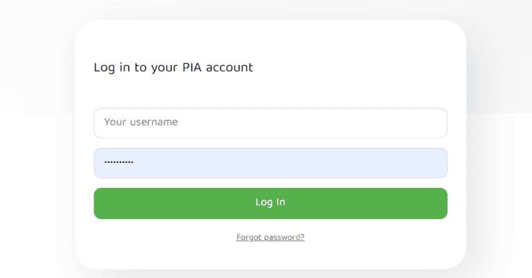 - انتقل إلى لوحة تحكم عميل PIA وقم بتسجيل الدخول.