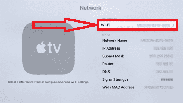 - على جهاز Apple TV الخاص بك وانتقل إلىإعدادات>شبكة.