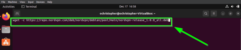 - قم بتشغيل الأمر أدناه لتنزيل تطبيق NordVPN على نظام Ubuntu الخاص بك عبر الجهاز.