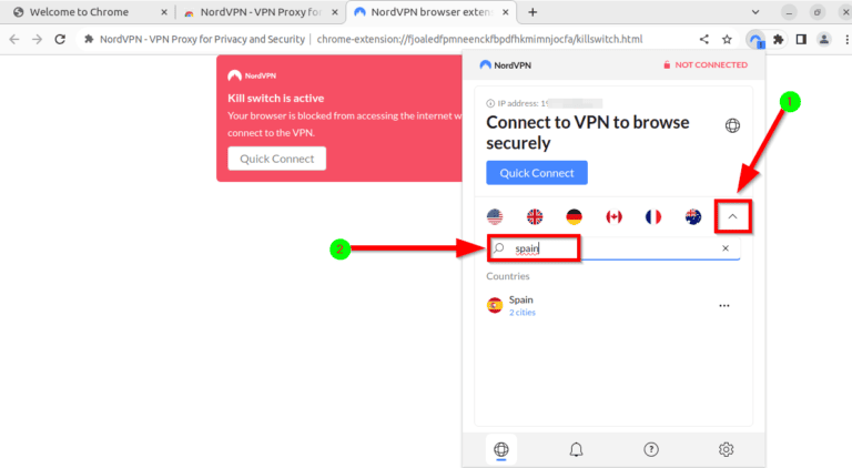 - ملحوظة:بالنسبة للبلدان التي لديها خوادم في المدينة، يمكنك اختيار المدينة التي تريد الخوادم فيها. في هذه الحالة، سأختار "مدريد.”