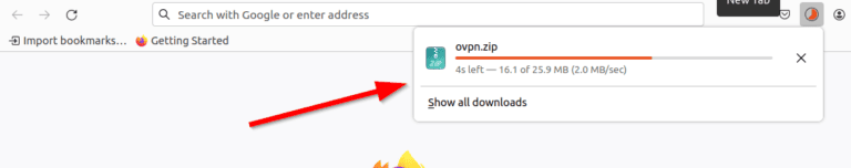 - قم بتشغيل الأمر أدناه لتنزيل ملفات تكوين OpenVPN إلى الدليل المختار.