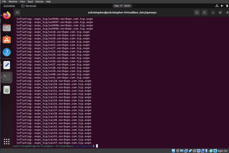 - سيتم الآن تفكيك قائمة خوادم OpenVPN الخاصة بـ NordVPN في جهازك الطرفي.