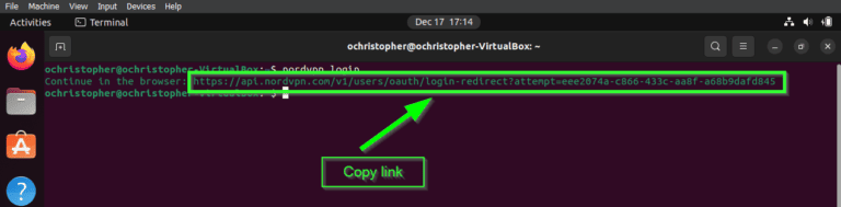 - انسخ الرابط وافتحه في متصفح Ubuntu المفضل لديك للوصول إلى صفحة تسجيل الدخول إلى NordVPN. سأستخدم Firefox لهذا المثال.