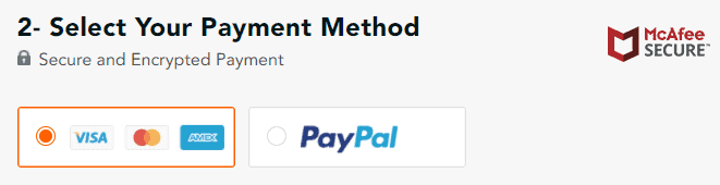 بعد ذلك، حدد طريقة الدفع الخاصة بك وأدخل التفاصيل الخاصة بك لإكمال عملية الشراء. تقبل PureVPN كلاً من PayPal وبطاقات الائتمان.