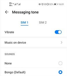3.انقر فوق علامة التبويب "نغمة الرسالة" لتشغيل الاهتزاز أو تحديد نغمة رنين كصوت الإشعارات.