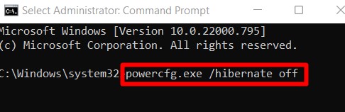 الخطوة 2: ثم تكتب الأمر "Powercfg / إيقاف السبات“