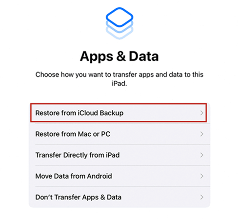 الخيار 1. استعادة iPad من نسخة احتياطية في iCloud