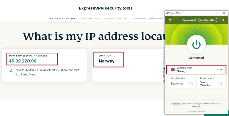 - بمجرد الاتصال، استخدم أداة فحص IP للتأكد من أن حركة المرور على الإنترنت تمر الآن عبر VPN. لقد استخدمتمدقق IP ExpressVPNلهذا المثال.