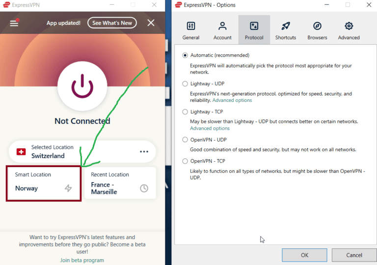 - اتصل بخادم ExpressVPN المفضل. سأتصل بخادم سويسرا لهذا المثال.