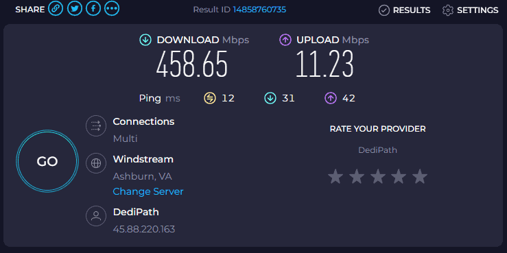 بالرغم منتم اختبار PIAتمامًا، ما زلت قررت تجربة سرعات PIA أثناء إجراء مكالمة صوتية على Discord. ليانخفضت سرعة التنزيل بنسبة 26% فقطلكن سرعة التحميل ظلت كما هي.