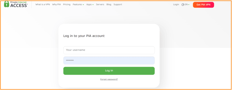 - تسجيل الدخول إلى PIA الخاص بكحساب المستخدم.