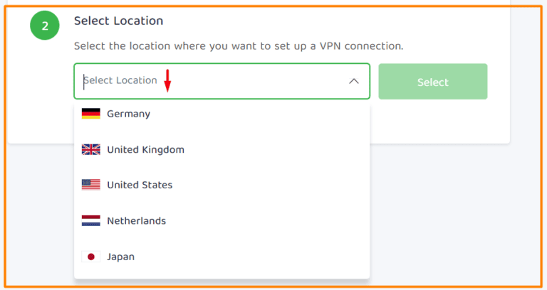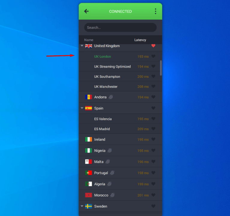 - نصيحة– اختر الخادم الأقرب إليك للحصول على سرعات أعلى.