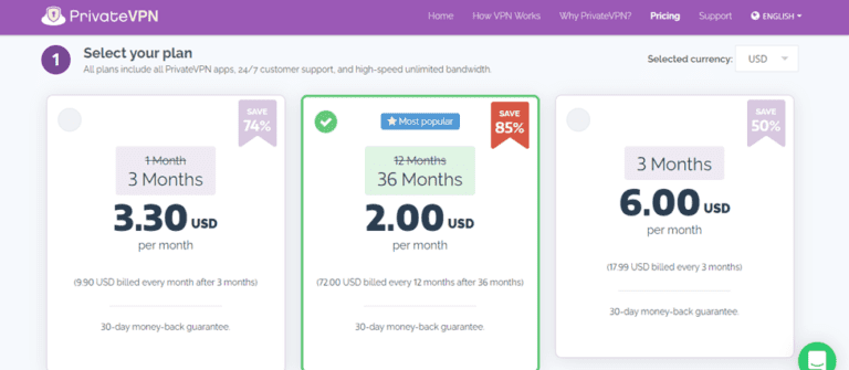 - لا يوجد نسخة تجريبية مجانية:لسوء الحظ، PrivateVPN لا يقدم نسخة تجريبية مجانية. ولكن إذا كنت لا تزال ترغب في تجربتها، فاحصل على هذهخصومات PrivateVPNللاستمتاع أضمان استعادة الأموال لمدة 30 يومًا.