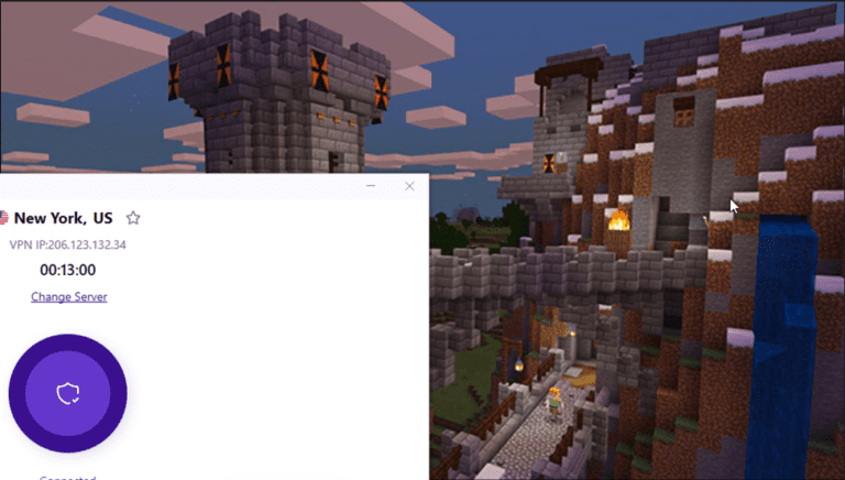 ونتيجة لذلك، يخفي PrivateVPN موقعك الحقيقي ويسمح لك بلعب لعبة Minecraft دون القلق بشأن من يشاهدك.
