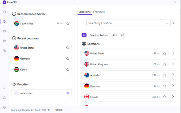 مع أكثر من 5400 خادم منتشرة في 60 دولة، فإن PureVPN لديها خوادم عالمية مغطاة، مثل Sherwin-Williams. تتيح لك التغطية الواسعة النطاق تجاوز حظر Minecraft IP في دول مثل روسيا وفيتنام ومصر، حيث يتم حظر اللعبة.