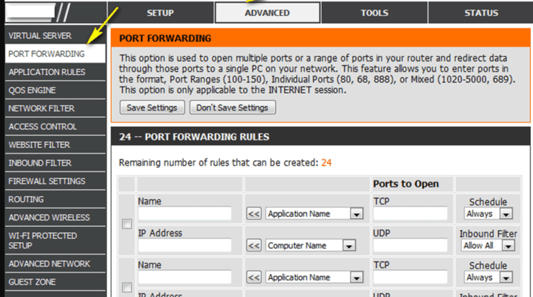 - انتقل إلى قسم إعادة توجيه منفذ جهاز التوجيه الخاص بك.