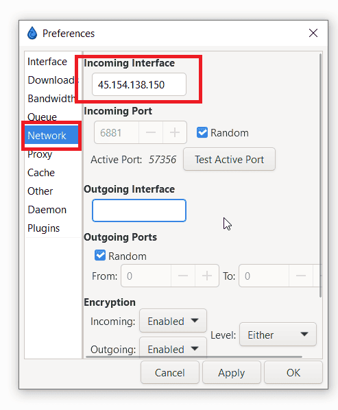 بدلا من ذلك، يمكنكقم بربط عنوان VyprVPN IP الخاص بك بـ Deluge للتأكد من أنه يقوم فقط بتنزيل ملفات التورنت عبر عنوان IP المخصص لـ VPN.