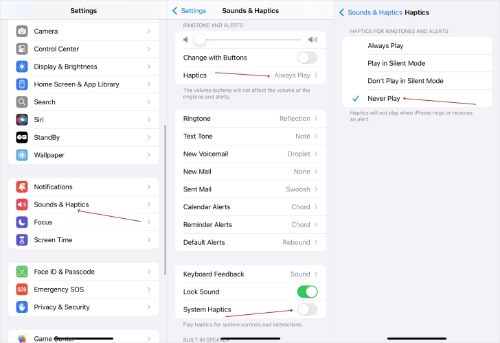 الخطوة 3.وبعد ذلك يمكنك إيقاف تشغيلاهتزازيُحوّل.