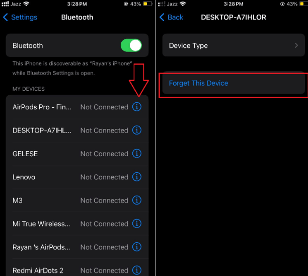 - الخطوة 4.لفصل جهاز معين، اضغط على "أنا” بجواره، ثم اضغط علىننسى هذا الجهاز.