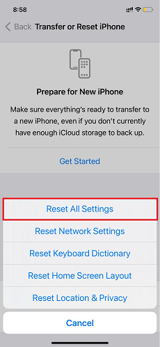 - الخطوة 3.اختر إعادة تعيين وانقر فوق تحديد إعادة تعيين جميع الإعدادات.