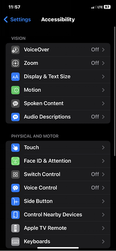 - الخطوة 2.اضغط علىإمكانية الوصولثم اضغطالتحكم الصوتي.