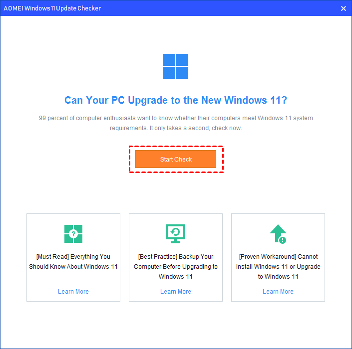 يبرز IEMOA Partition Assistant Standard كخيار مثالي. يمكن لـ "Windows 11 Update Checker" فحص جهاز الكمبيوتر الخاص بك بعمق وتحديد مشكلات التوافق. والأهم من ذلك أنه يقدم تحليلاً مفصلاً للمشكلات المحددة ويقترح حلولاً محتملة لحل مخاوف التوافق. يمكنك إصلاح معظم المشكلات مباشرة في هذا البرنامج القوي.