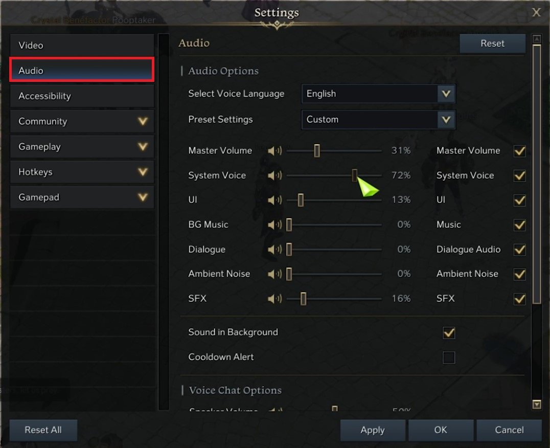 افتحالسفينة المفقودةوانتقل إلى الخاص بكإعدادات الصوت.
