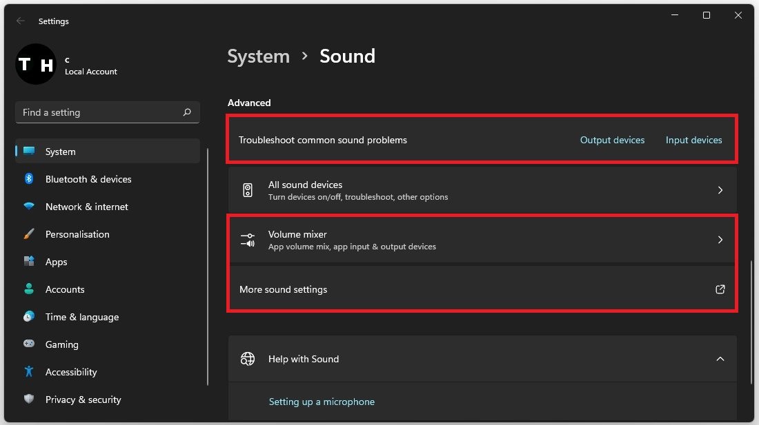إعدادات الصوت المتقدمة > استكشاف مشكلات الصوت الشائعة وإصلاحها