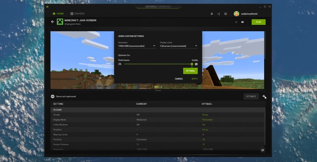تجربة GeForce > الصفحة الرئيسية > Minecraft > استخدم الإعدادات المخصصة